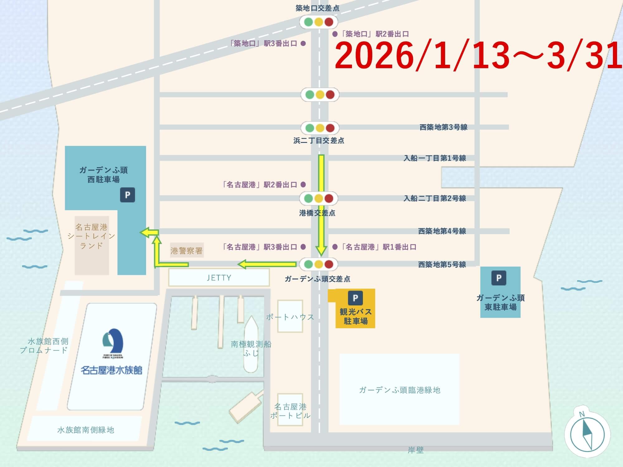 お車でお越しの場合は「ガーデンふ頭駐車場」でカーナビを設定ください。