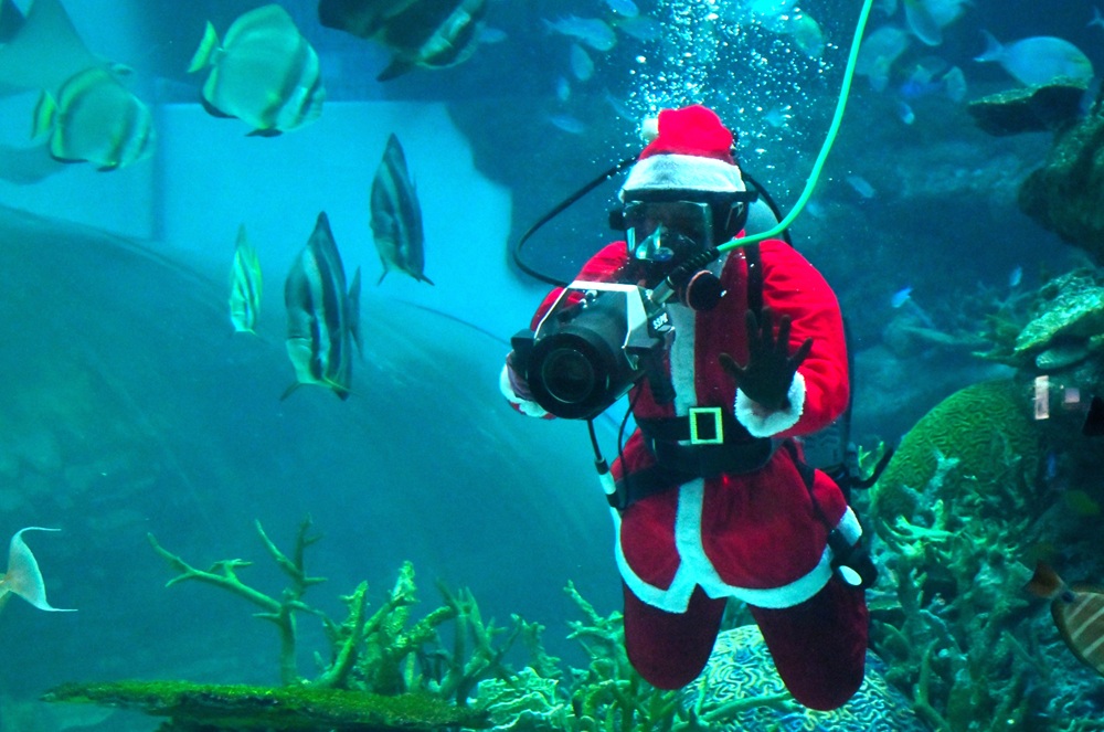 ❄サンゴ礁大水槽に「サンタダイバー」が登場!