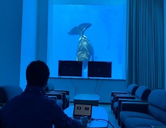 講演者である三田 歩博士は、この秘密を探るためこれまでおよそ7年間、当館と共同でシャチの視覚能力を調べる認知研究を行ってきました。