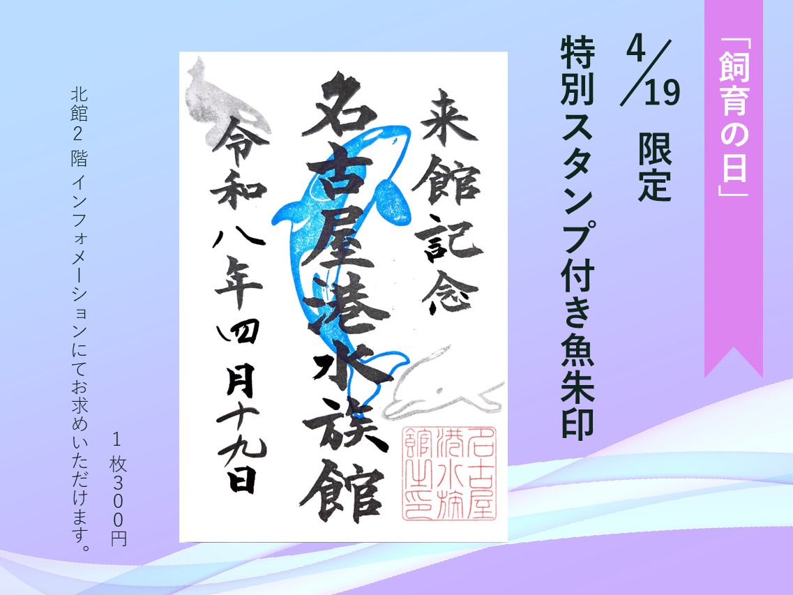 4月19日(日)は「飼育の日」です。この日限定で「シャチ」「イルカ」をモチーフにした特製スタンプを押印した魚朱印を販売します。