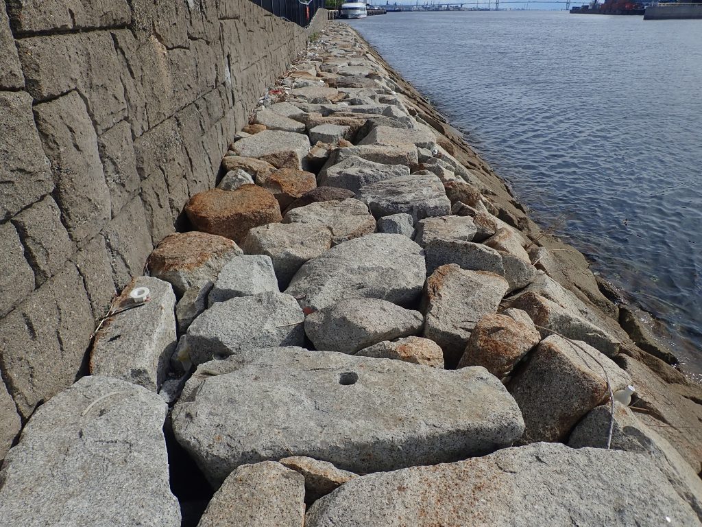 ・清掃場所は石積み防波堤の上です(写真参照)。