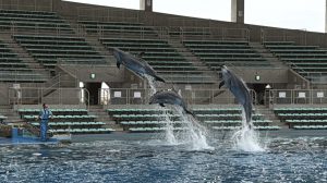 メインプールで初めて会うイルカたちやプールにも少しずつ慣れていき、1か月がたった今では他のイルカの種目に自らついていき、練習したことのない種目を真似たりしていて、私たちも日々驚いています😊