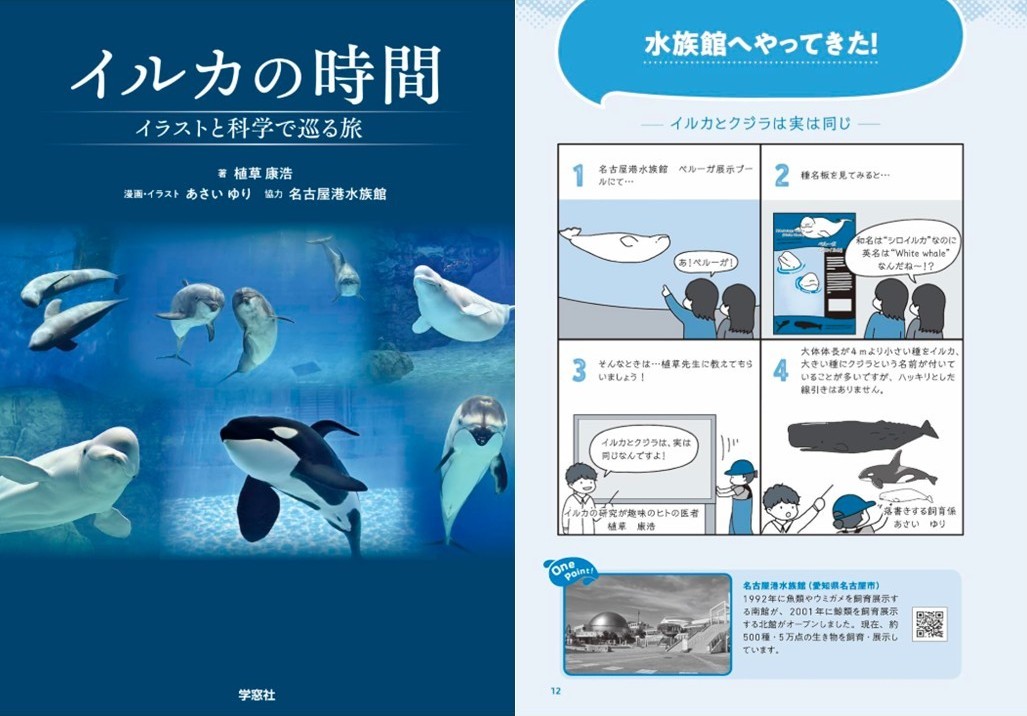 本の解説部分を担当した共著者の植草先生(なんと本業はヒトのお医者さん!)からは、ご自身がプライベートで行われているイルカの研究などについてお話していただきました。私は今回の出版ではイラストレーターのような立場で漫画や挿絵を担当したので、発表内容の半分はイラストのことについて、もう半分は名古屋港水族館のイルカの飼育に関するお話しをしました。
