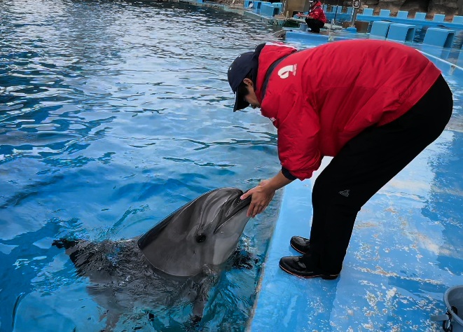 飼育係からの信頼も厚く、他のバンドウイルカが出産したあとには、赤ちゃんの成長段階を見ながらアンを同じプールに合流させて、子育てをサポートしてもらうこともあります。