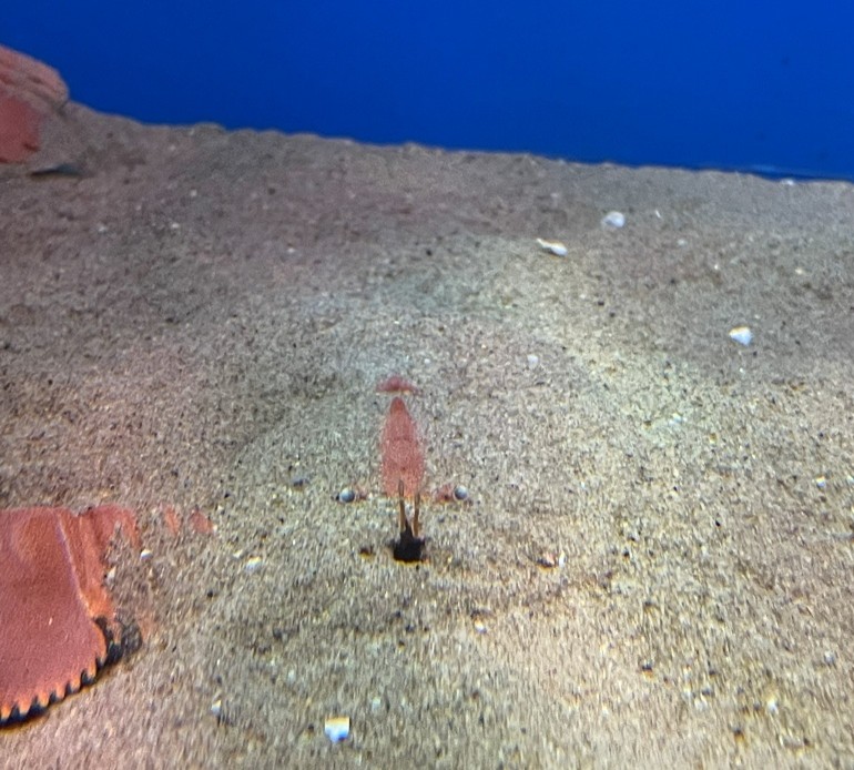 面白い!と思ったのは、オキアミを全部食べるのではなく、脚を使って器用にオキアミの頭や殻などを取り除くようにして、身と分けながら食べていたこと‼ウチワエビたちも食へのこだわりを持っているんだなと感じた発見でした(*^^)v