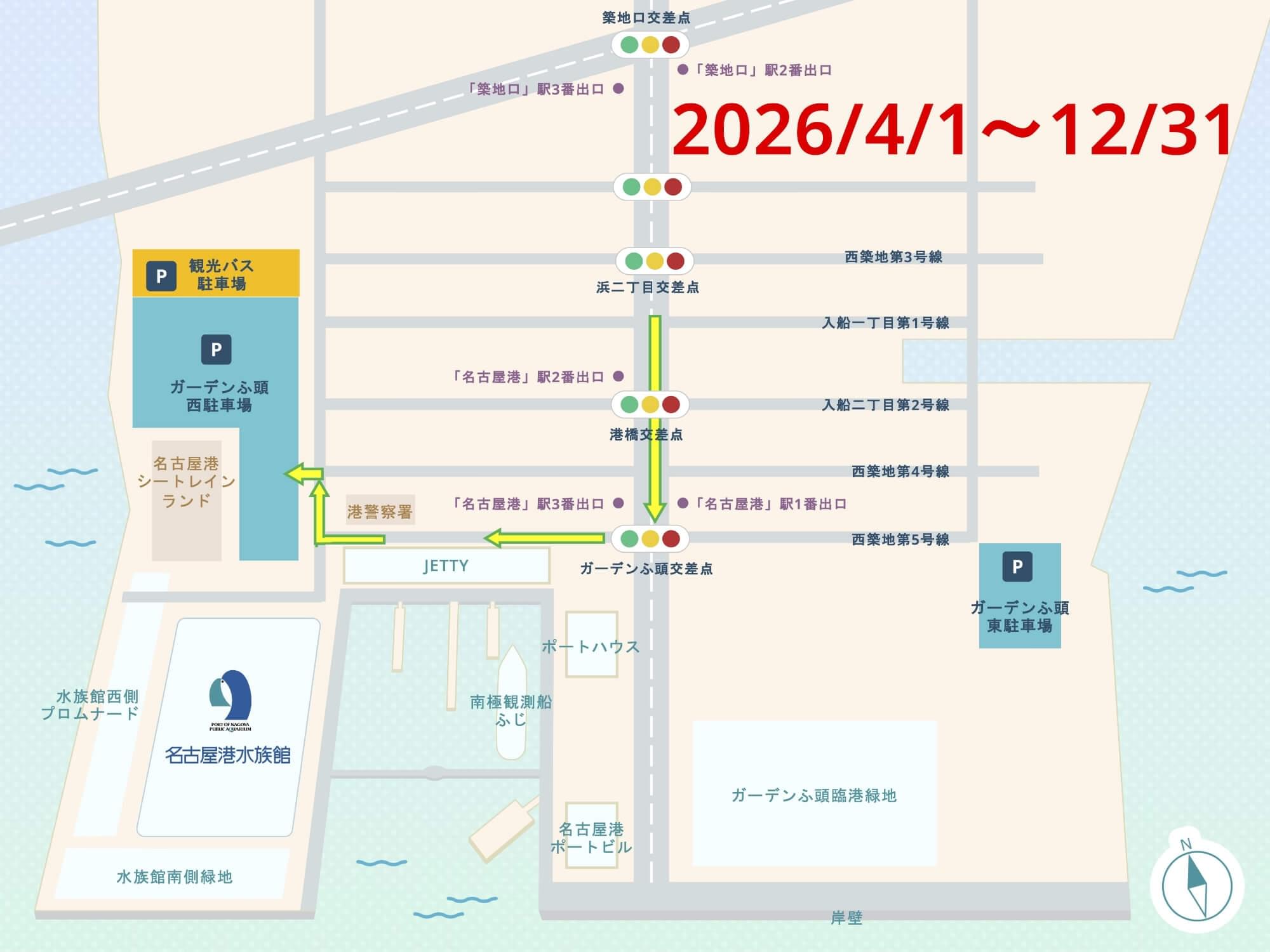 お車でお越しの場合は「ガーデンふ頭駐車場」でカーナビを設定ください。
